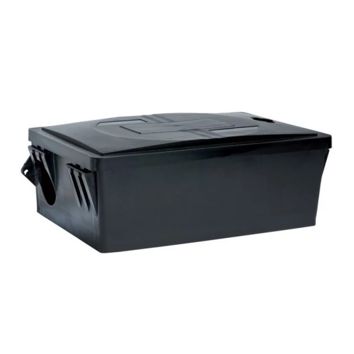 Kültéren és beltéren egyaránt gazdaságosan és biztonságosan használható kiváló minőségű patkányetető eszköz. Az időjárásálló, kemény műanyag (polipropilén) kivitelben készülő láda megakadályozza, hogy illetéktelenek hozzáférjenek az irtószerhez. A mindkét irányba felhelyezhető, oldalra nyíló tető lehetővé teszi a láda sokoldalú kihelyezését és a kényelmes, gyors munkavégzést. A különlegesen kialakított belső nedvesség és pára elvezető rendszerének köszönhetően a ládába kerülő víz az erre a célra kialakított lyukakon ki tud folyni, biztosítva a benne lévő rágcsálóirtó szer épségének a megőrzését. A láda rendkívül sokoldalúan használható: valamennyi rágcsálóirtó szer formuláció és kihelyezésére alkalmas.